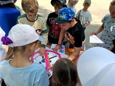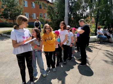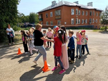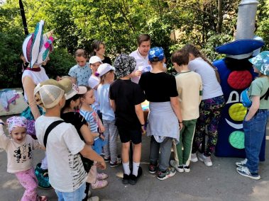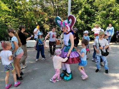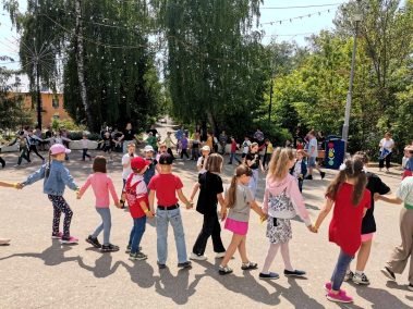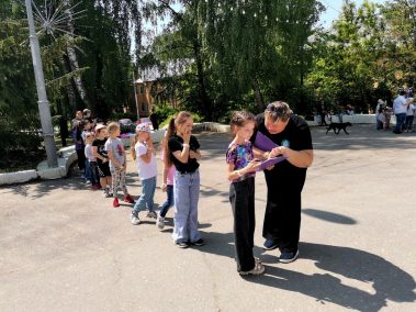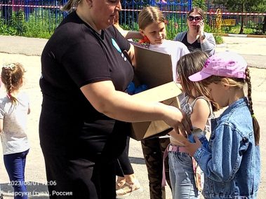 1 июня около Дома Культуры “Барсуковский” собрались девчонки и мальчишки, чтобы отпраздновать этот праздник. Главные герои праздника нашли волшебные часы, которые неожиданно перенесли их в будущее, превратив во взрослых. Они не хотели становиться взрослыми так быстро, и попросили ребят помочь им вернуться в детство, пройдя несколько разных испытаний: ответить на вопросы сказочной викторины, собрать пазлы дорожных знаков, превратиться в художников и многое другое.