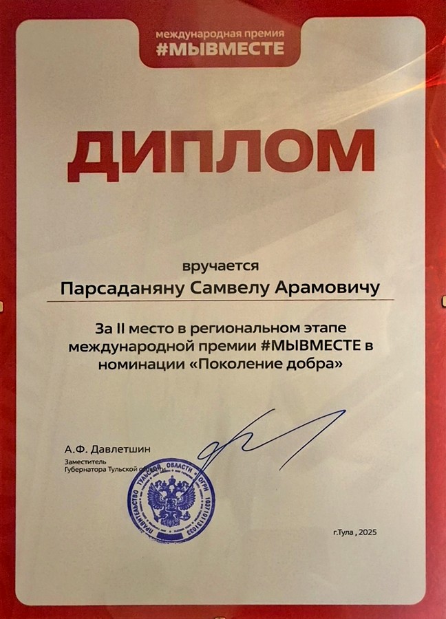 ️Парсаданян Самвел стал лауреатом || степени регионального этапа #МЫВМЕСТЕ в номинации “Поколение добра”!!!