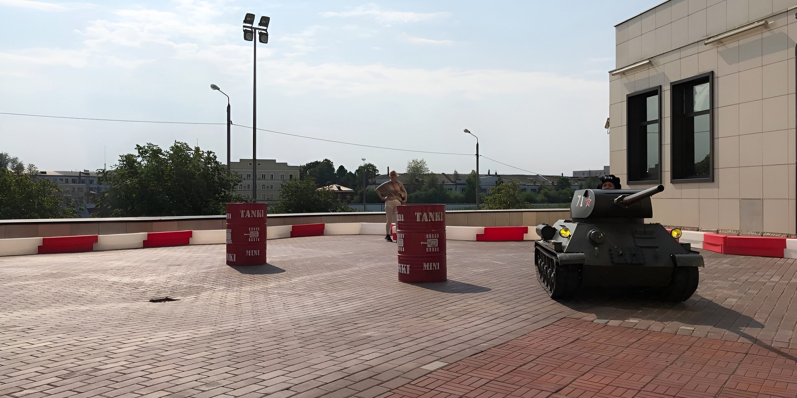 возможность покататься на мини-версии танка по специальной трассе на уменьшенной копии Легендарного Советского танка Т-34-85