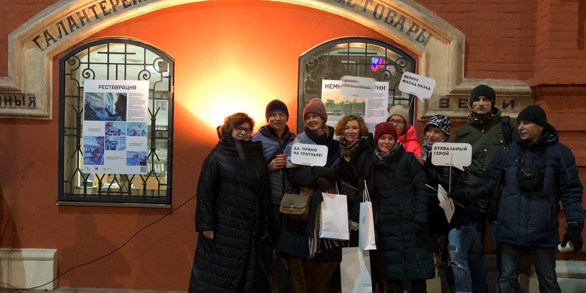 Открытие восстановленных вывесок отметили “тротуарной вечеринкой”. Перед зданием военного суда собрались члены трудовой коммуны “Вспомнить все”, сотрудники ТИАМа и туляки, которых беспокоила судьба надписей.