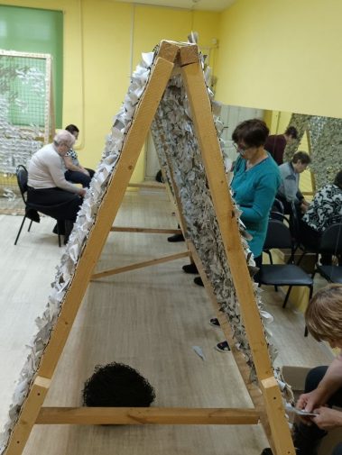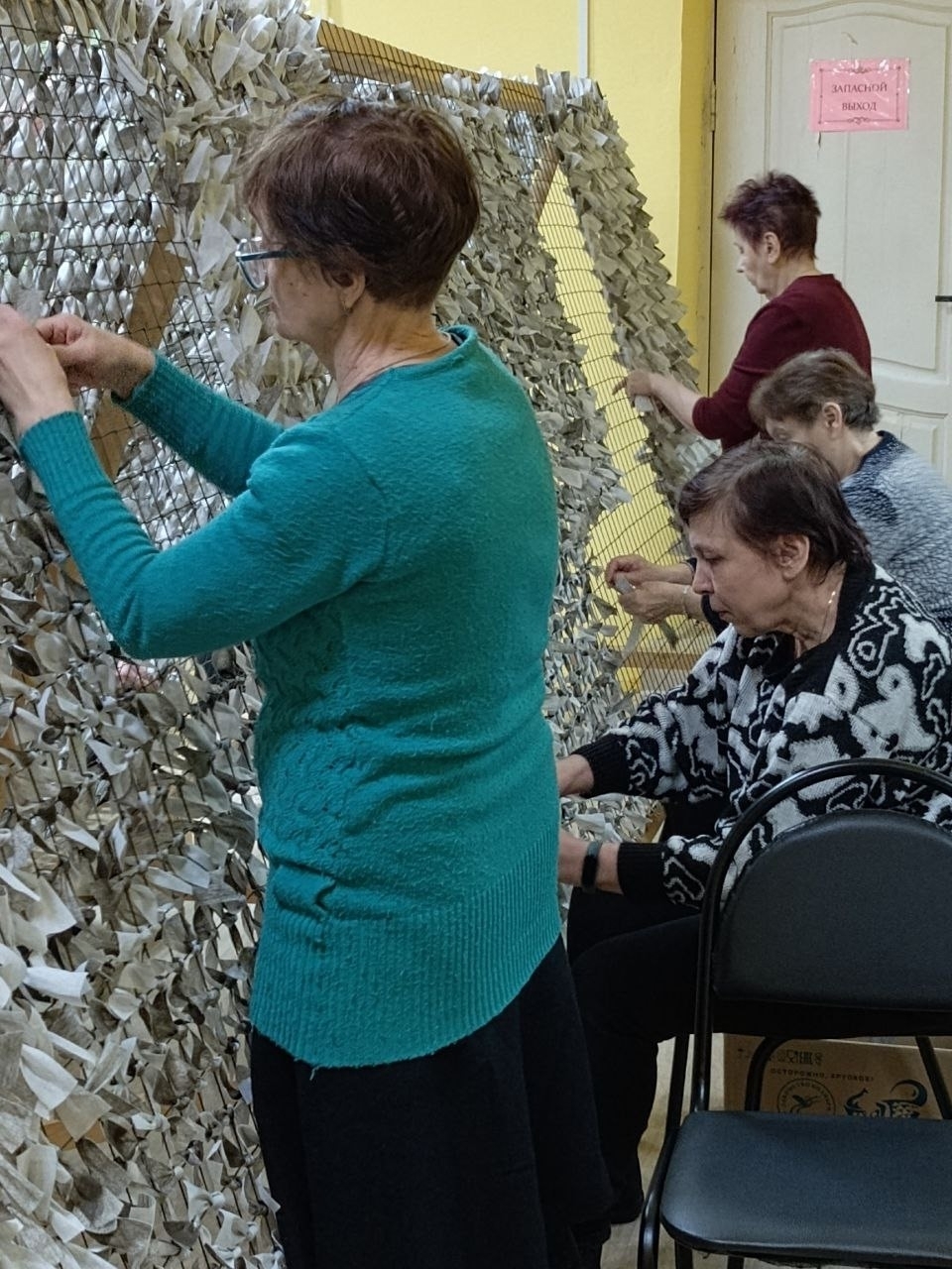 В рамках этого события в мастерской Центра творчества “Алёшинский” кипела работа на благое дело — для тех, кто сейчас находится на передовой. Заботливые руки мастериц плели маскировочные сети.