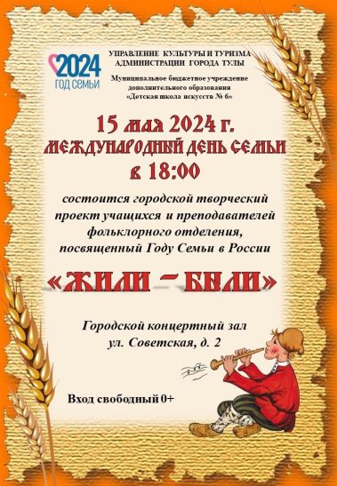 На празднике Вы узнаете историю одной семьи, которая волей судьбы, оказалась неотъемлемой частью истории Детской школы искусств № 6; познакомитесь с обрядами, играми, с душевными старинными песнями о любви, природе, жизни; сможете восхититься красотой костюмов, сшитых в традициях прошлых лет. Но главное, Вы попадете в удивительную атмосферу БОЛЬШОЙ Семьи нескольких поколений.