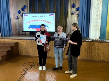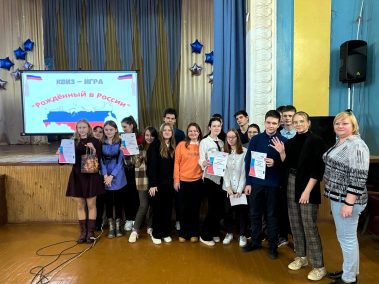 16 февраля в Доме культуры “Барсуковский” прошла КВИЗ-ИГРА “РОЖДЕННЫЙ В РОССИИ”, в которой приняли участие учащиеся старших классов из МБОУ ЦО №13 им. Е.Н. Волкова.
