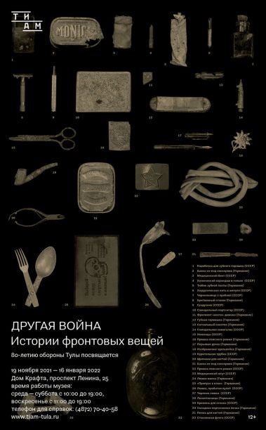 17:30 – презентация каталога «Вещи войны» (Денис Бычихин, заведующий экспозиционно-выставочным отделом музея); презентация Тульского краеведческого альманаха №18 (Юлия Иванова – главный редактор альманаха).