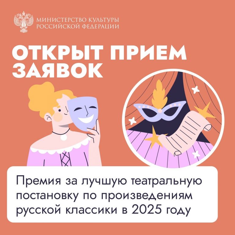 Театр встречает классику! Открыт прием заявок на премию за лучшую театральную постановку по произведениям русской классики в 2025 году. В конкурсе участвуют спектакли, поставленные в 2024-2025 гг. Соискателями могут быть профессиональные репертуарные театры с постоянной труппой, которые в своем репертуаре имеют спектакли, ориентированные на детскую, подростковую и юношескую аудиторию, а…