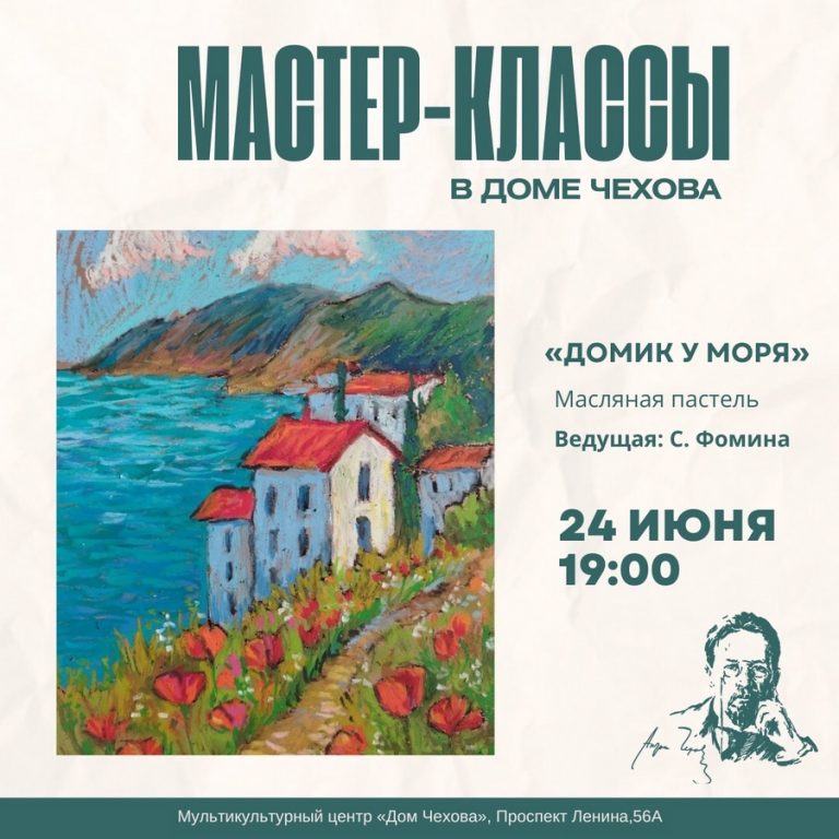 Под руководством талантливой художницы Светланы Фоминой вы: Научитесь работать с масляной пастелью — мягкой, яркой и податливой Создадите собственный домик мечты у моря Погрузитесь в атмосферу творчества и найдете свое место силы на бумаге Билеты по ссылке: clck.ru/3MXQ4H | пр-т Ленина, д.56А (ост.Первомайская) | тел.: 71-67-33