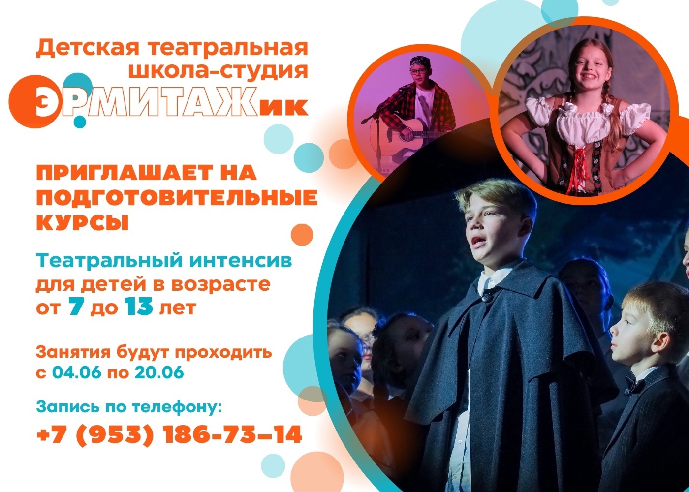 4 июня стартуют подготовительные курсы в ЭРМИТАЖик: детская Театральная школа-студия!!! У вас есть возможность: – узнать секреты актёрского искусства для детей; – найти новых друзей; – раскрыть новые таланты и способности у ребёнка. Обращаем ваше внимание: количество мест в учебных группах ограничено. Источник: ЭРМИТАЖик: детская Театральная школа-студия