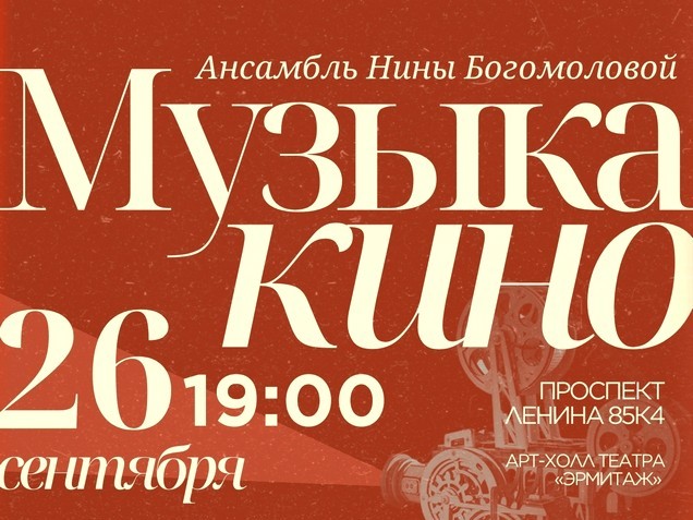 26 сентября (пт) в 19:00 Арт-холл театра “Эрмитаж” Ансамбль Нины Богомоловой представит обновлённую программу “Музыка кино”! К уже полюбившимся слушателям песням музыканты добавили несколько прекрасных новинок. “12 стульев”, “Любовь и голуби”, “Большая перемена” и другие кинокартины, без которых уже сложно представить нашу жизнь, оживут на сцене через мелодии, сыгранные и…