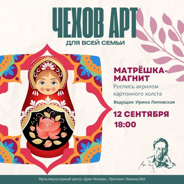 Создадим своими руками уникальный и яркий сувенир — матрешку-магнит на картонном холсте! Это прекрасный шанс проявить фантазию, почувствовать себя художником и унести с собой частичку русского колорита.  Все материалы предоставляем! Билеты: clck.ru/3P4Kpu  У нас будет тепло, душевно и по-осеннему уютно.