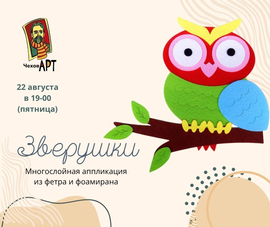Мягкое волшебство своими руками! 22 августа в 19:00 Приглашаем вас на уютный творческий мастер-класс с Ириной, где мы будем создавать очаровательных зверушек из фетра и фоамирана! Что вас ждет: Работа с приятными на ощупь материалами. Возможность создать любую зверушку по вашему вкусу (у нас есть множество идей, но приветствуются и…