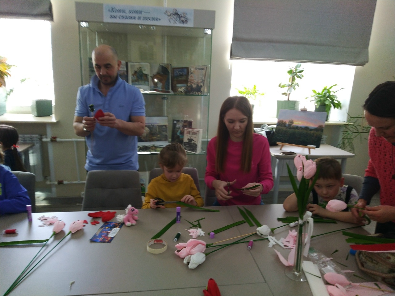 После чтения замечательной сказки Ирины Зартайской “Моя мама самая лучшая” девчонки и мальчишки, посетители “Семейной субботы”, спешили сделать для своих мам букетики тюльпанов. Было волнительно, ведь букет предполагался для самого дорогого человека — мамы. Но у всех всё получилось! Источник: Центральная городская библиотека имени Л.Н. Толстого