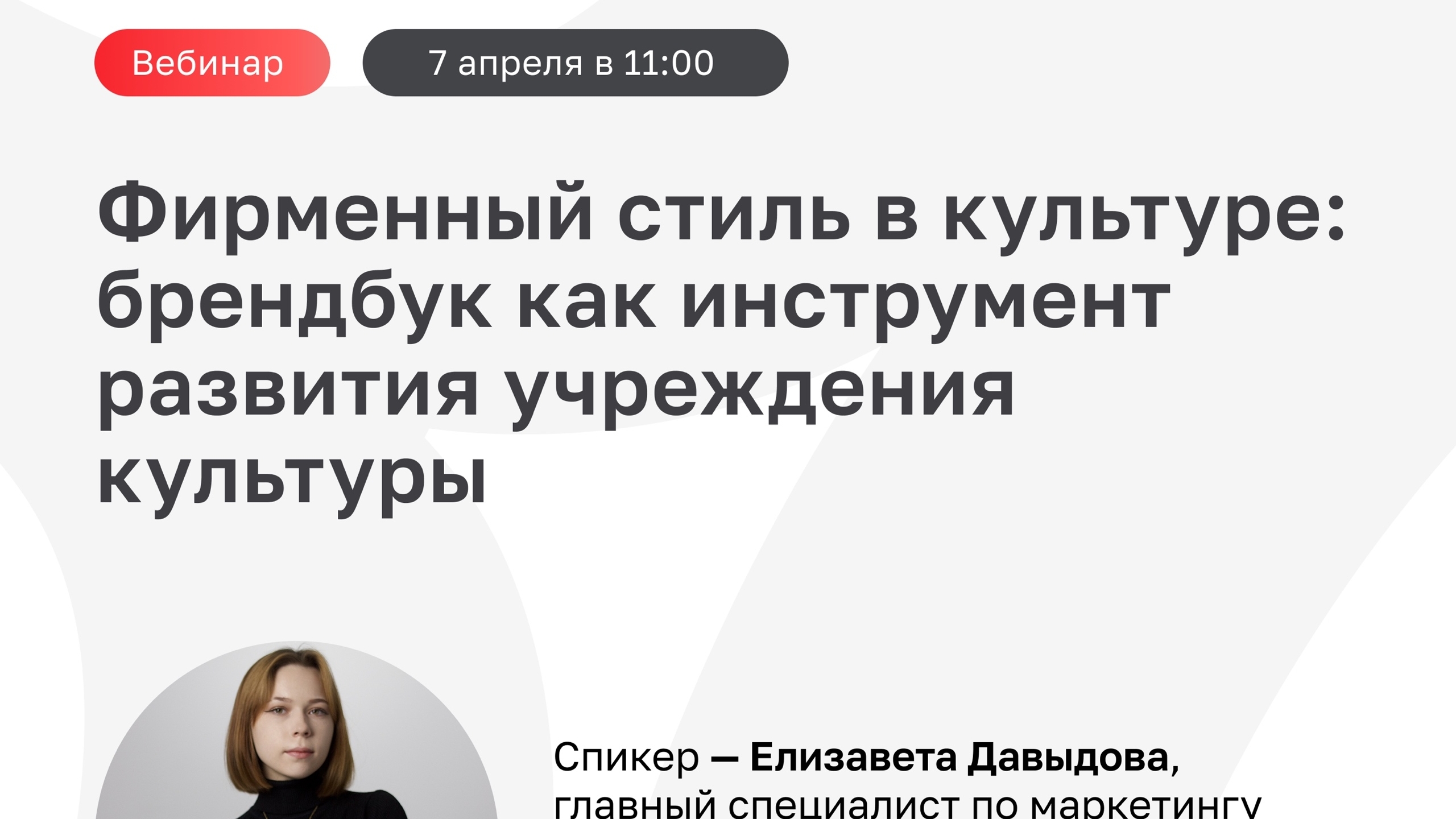 7 апреля в 11:00 в эфире PRO — вебинар “Фирменный стиль в культуре: брендбук как инструмент развития учреждения культуры”. Присоединиться — по ссылке: vk.cc/cW5eYw На встрече: 1. Разберемся, зачем учреждению культуры нужен брендбук, какие задачи он решает и в каких программах можно разработать брендбук самостоятельно. 2. Отметим преимущества единого стиля…