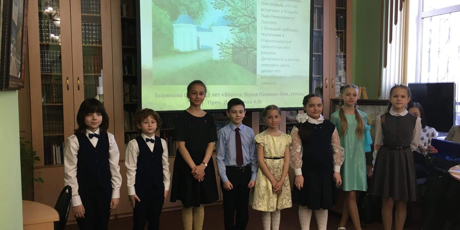 23 апреля в Центральной городской библиотеке им. Л.Н. Толстого состоялось городское мероприятие «Ясная Поляна в музыке и живописи», приуроченное к 100-летнему юбилею музея-усадьбы Л.Н. Толстого «Ясная Поляна», в котором приняли участие обучающиеся МБУДО ДШИ им. Г.Г. Галынина вокально-хорового, народного, духового, струнного, художественного отделений. Юные художники подготовили презентацию из своих работ. В программе прозвучали произведения Л. Моцарта, Г. Генделя, Г. Вольфа, П. Чайковского, И. Штрауса, С. Прокофьева, Ж. Металлиди.