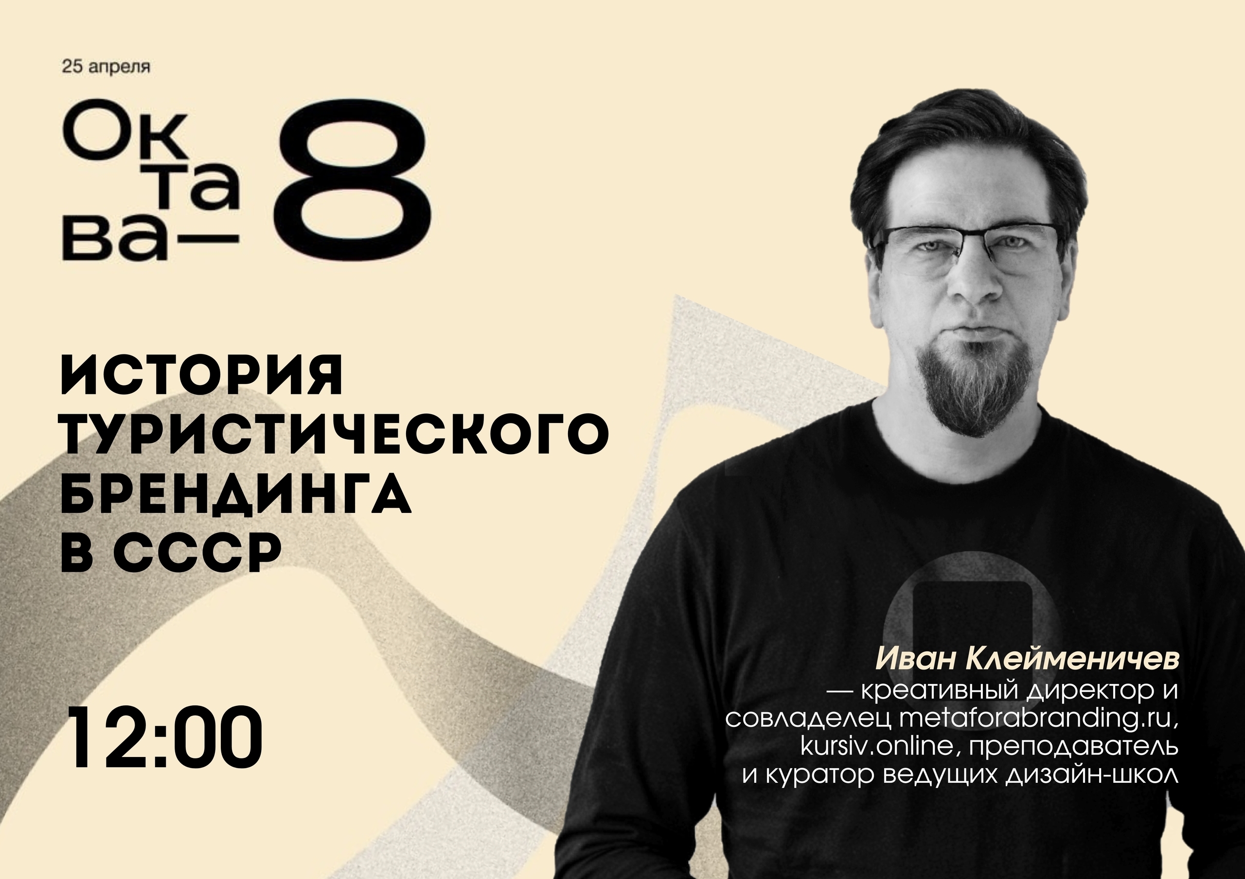 • 12:00 — лекция “История туристического брендинга в СССР” креативного директора и совладельца студии Metaforabranding, преподавателя и куратора ведущих дизайн-школ Ивана Клейменичева (vk.com/id175127040)