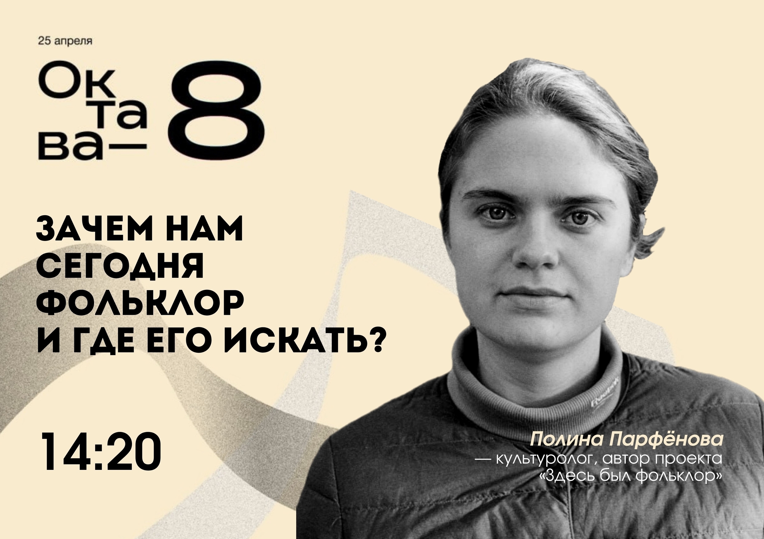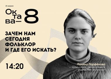 • 14:20 — лекция “Зачем нам сегодня фольклор и где его искать” Полины Парфеновой (vk.com/id223450494), культуролога, автора проекта «Здесь был фольклор» (vk.com/club200966886)