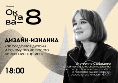 • 18:00 — лекция “Дизайн-изнанка” Екатерины Свиридовой (vk.com/id308957929), дизайнера в Мастерской госдизайна “Сенеж” и сооснователя лектория “БАЗА” в Санкт-Петербурге