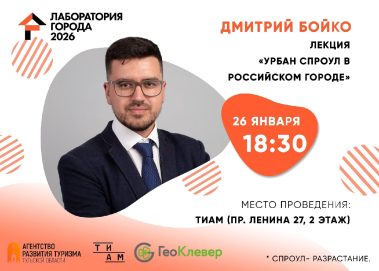 Лекция входит в программу событий «Лаборатория города 2026» – образовательно-просветительский проекта, вовлекающего активных жителей города в процессы создания современных общественных пространств.