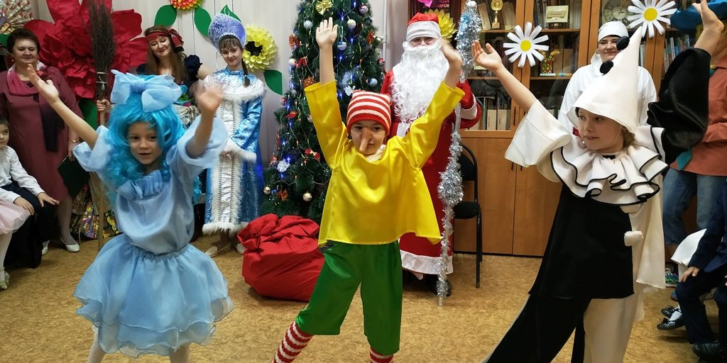 Праздник “Новый год, Новый год в сказку добрую зовет” на какое-то время превратил читальный зал библиотеки в Цветочный город, жители которого в первый раз увидели Зиму и учились встречать Новый год! А помогали им в этом юные “библионики”, ведущая и Дед Мороз со Снегурочкой. Незнайка и доктор Пилюлькин познакомились с “зимними словами”, а ребята им объяснили, что они значат, поиграли в зимние загадки, лепили Снеговиков, танцевали. А Баба Яга чуть было не испортила веселье: украла мешок с подарками у Деда Мороза, потушила новогоднюю елочку и чуть было не поджарила на своей сковородке ребят. Но общими усилиями мальчишки и девчонки справились со злодейкой, и праздник продолжился.