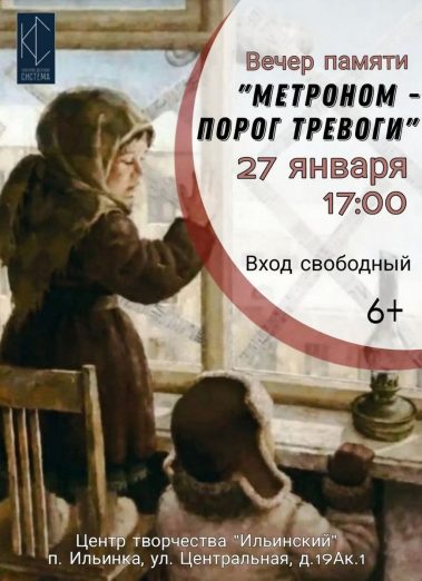 В Центре творчества поселка “Ильинский” пройдет Вечер памяти “Метроном – порог тревоги” на который мы приглашаем всех желающих!