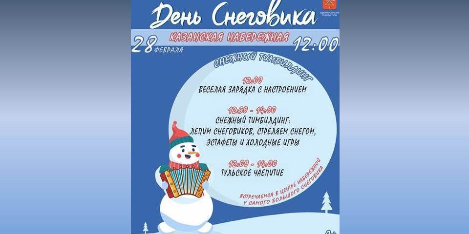 C 12.00 около большого Снеговика будет проходить зарядка, снежный тимбилдинг и тульское чаепитие.