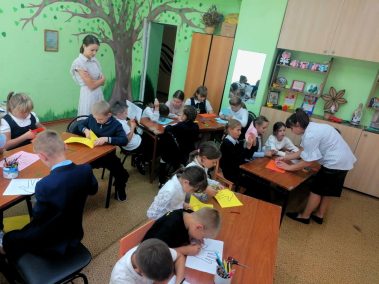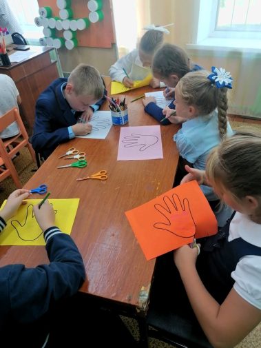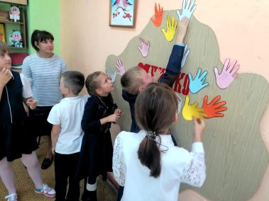 Всем участникам акции было предложено написать на символических листочках – ладошках, свои рассуждения о том, почему нужен мир и чем опасен терроризм. Эти листочки ребята прикрепили к “Дереву жизни”.