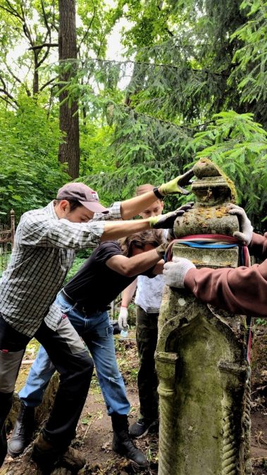 Волонтеры занимаются отдельными участками на территории некрополя — утилизируют мусор, убирают лишнюю растительность, поднимают опрокинутые памятники, чистят и консервируют отдельные надгробия.