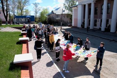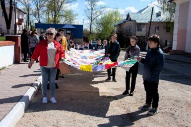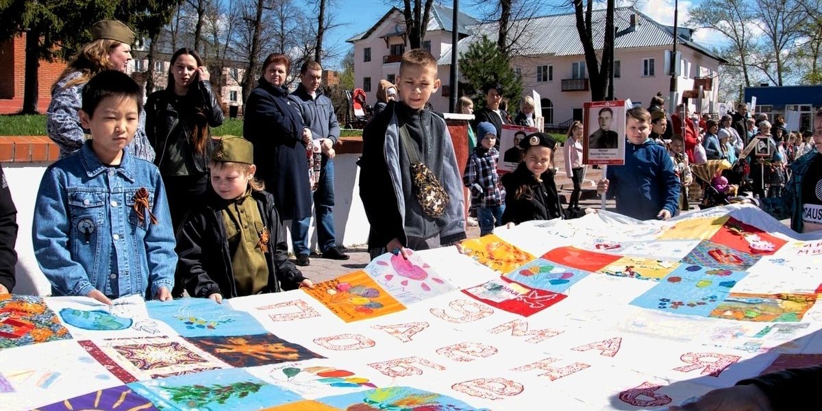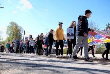 Во время «Бессмертного полка» участники проносят полотно по главной улице, выразив в работах память и славу героям ВОВ.
