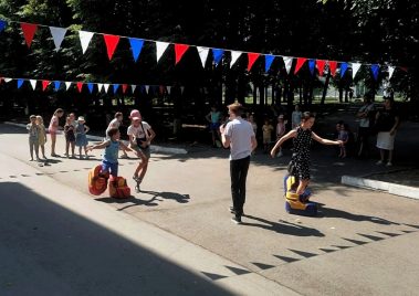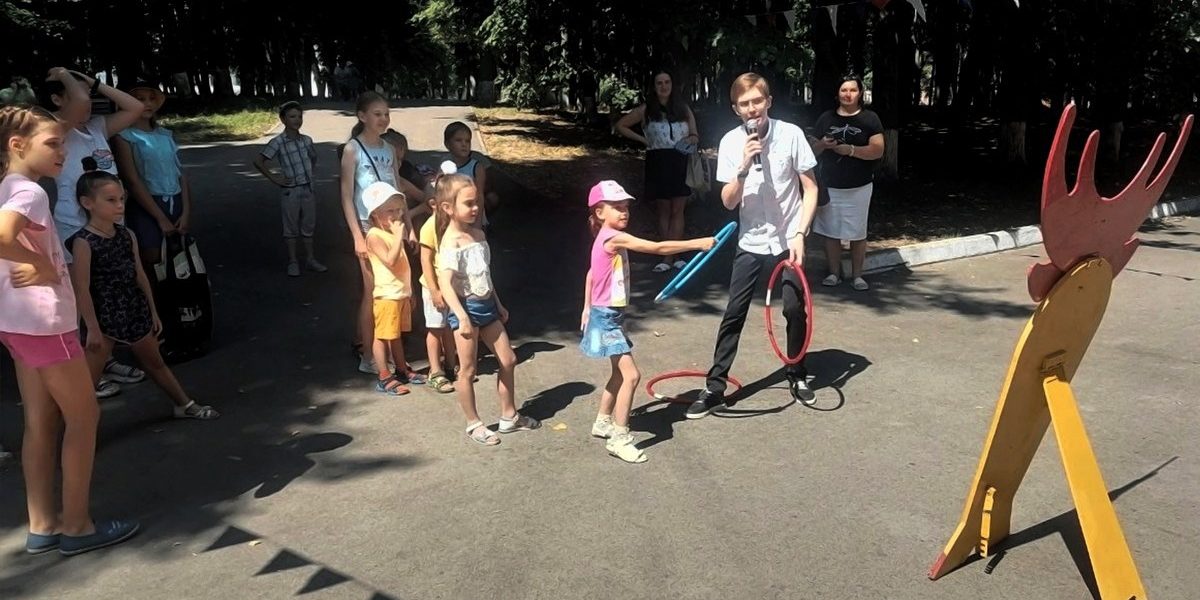 Яркая, очень жаркая и знойная погода не помешала традиционному проведению детской игровой программы в рамках городского проекта “Каникулы в городе”.