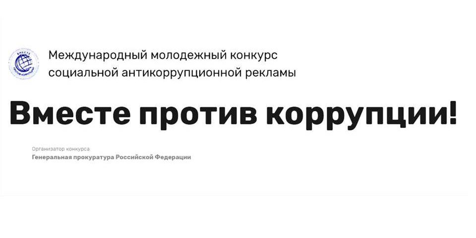 В 2019 году Генеральная прокуратура Российской Федерации выступает организатором Международного молодежного конкурса социальной антикоррупционной рекламы на тему «Вместе против коррупции!» (далее – Конкурс). Конкурс направлен на привлечение внимание проблеме коррупции не только молодежи, но и взрослого поколения, служит целям выработки нетерпимого отношения в обществе к ее проявлениям.