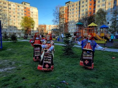 В преддверии празднования Великой Победы артисты Городского концертного зала подарили жителям двора по улице Лейтейзена, 8 развлекательно-игровую программу.