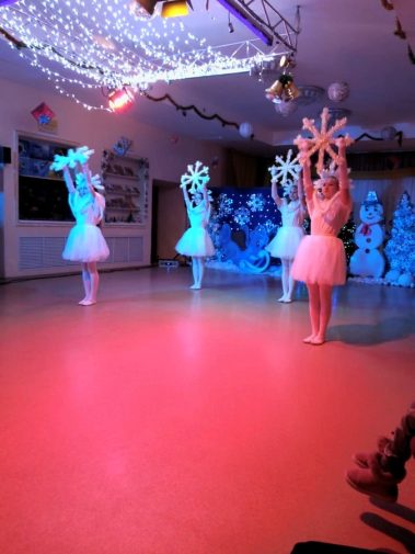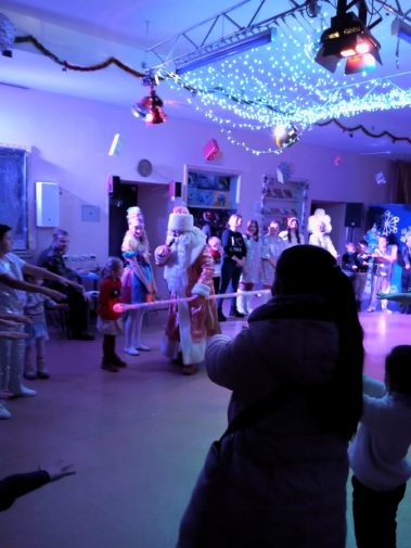 И, конечно же, не обошлось без главных зимних волшебников Деда Мороза и Снегурочки, хоровода вокруг ёлки и сладких угощений.