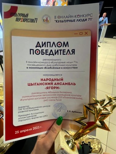 Народный цыганский ансамбль “Ягори” стал победителем II областного онлайн-конкурса “Культурные люди 71”.