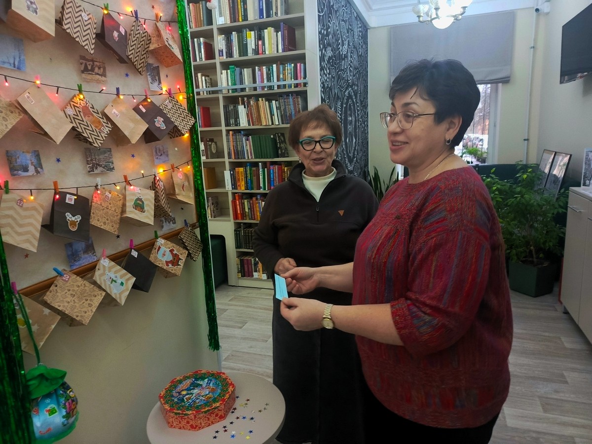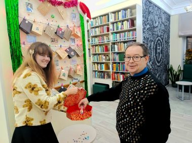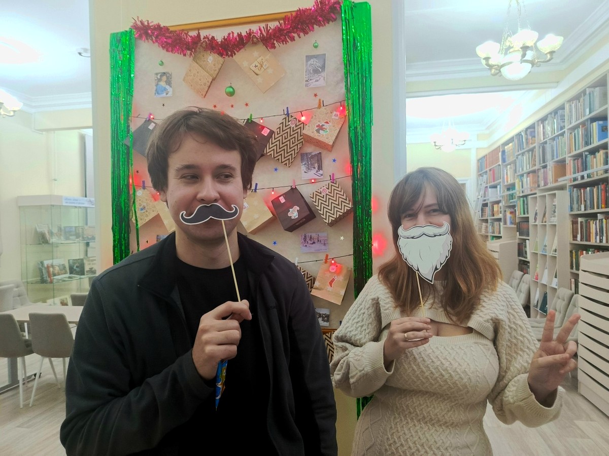 В Центральной городской библиотеке имени Л.Н. Толстого участники играли в игру “веришь-не веришь”, связанную с новогодними традициями разных стран мира и примеряли на себя карнавальный образ, получая взамен сладкие призы и предсказания на следующий год.