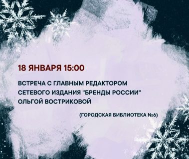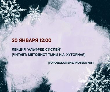 На этой неделе Вас ждет встреча с главным редактором сетевого издания “Бренды России” Ольгой Востриковой, лекция “Альфред Сислей” от методиста ТМИИ И.А. Хуторной, познавательные часы, зимний праздник и многое другое.