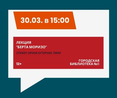 На этой неделе приглашаем вас на лекцию, посвященную жизни и творчеству талантливой художницы Берты Моризо. Кроме того, у нас запланированы занимательные настольные игры, а также музыкальный час, посвященный 180-летию со дня рождения выдающегося композитора Николая Римского-Корсакова. Для маленьких любителей литературы разнообразные увлекательные мероприятия. Приходите, будет интересно!