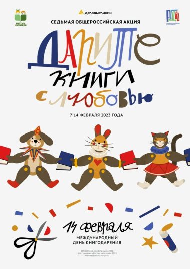 С 7 по 14 февраля 2023 года Ассоциация деятелей культуры, искусства и просвещения по приобщению детей к чтению “Растим читателя” проведёт Седьмую общероссийскую акцию “Дарите книги с любовью”, приуроченную к Международному дню книгодарения, который отмечается 14 февраля в 44 странах мира.