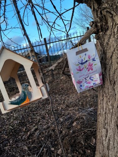 Ребята развесили кормушки, сделанные студией декоративно -прикладного творчества