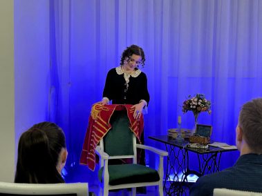 Камерная обстановка, замечательно воссозданный антураж литературных и киносцен, таинственный полумрак, свечи, старые письма, цветы и пиджак, забытый на вешалке. Возможно, это пиджак того самого мужчины, чьи письма бережно хранятся в резной шкатулке…