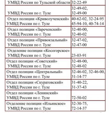 УМВД России по Тульской области для организации данной работы обеспечена круглосуточная работа телефона доверия: 32-22-49.
