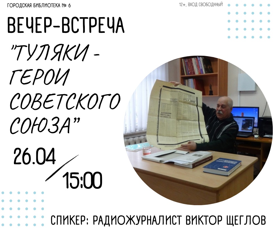 В программе: • Истории туляков, удостоенных звания Героя Советского Союза • Рассказ о героических подвигах на фронтах Великой Отечественной войны • Обзор краеведческой и художественной литературы о туляках-героях Встреча проходит в рамках празднования 80-летия Победы советского народа в Великой Отечественной войне. Приходите почтить память героев и узнать больше о подвигах…