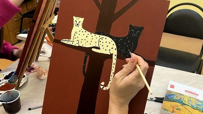 На мастер-классе программы очаровательные женщины нарисовали картину акриловыми красками.