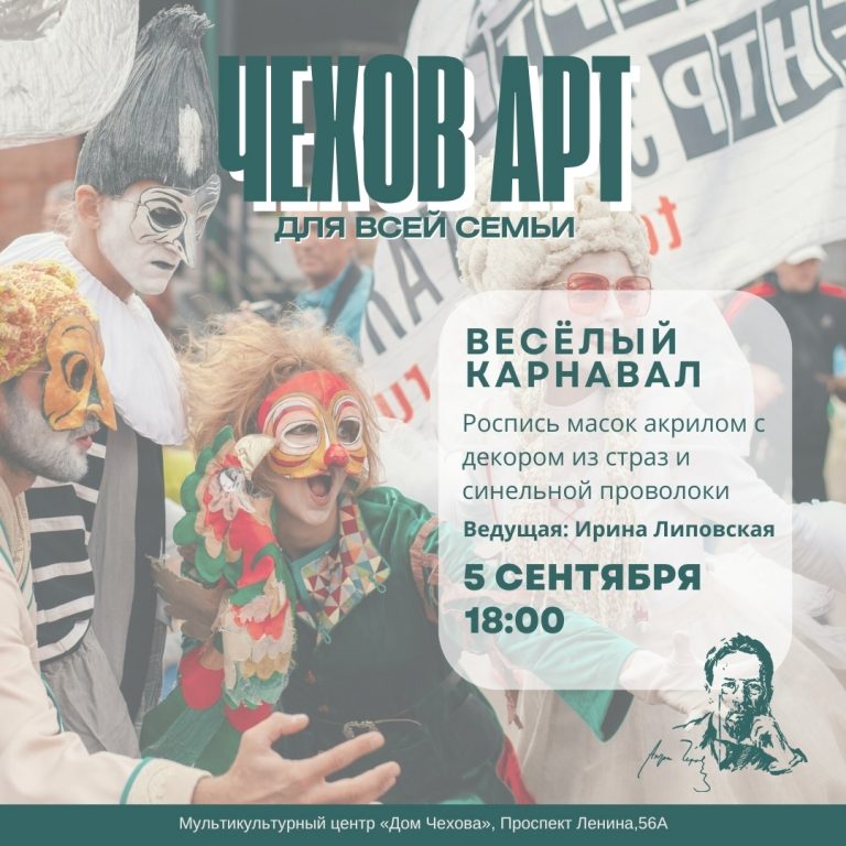 Мы ждём именно вас, чтобы вместе с артистами, клоунами и ходулистами пройти по улицам города в атмосфере настоящего праздника! Чтобы ваш образ был завершённым, приглашаем на мастер-класс по созданию масок! Он пройдет 5 сентября. На нём мы: Предоставим все материалы: заготовки и огромное количество декора. Поможем воплотить ваши самые креативные…