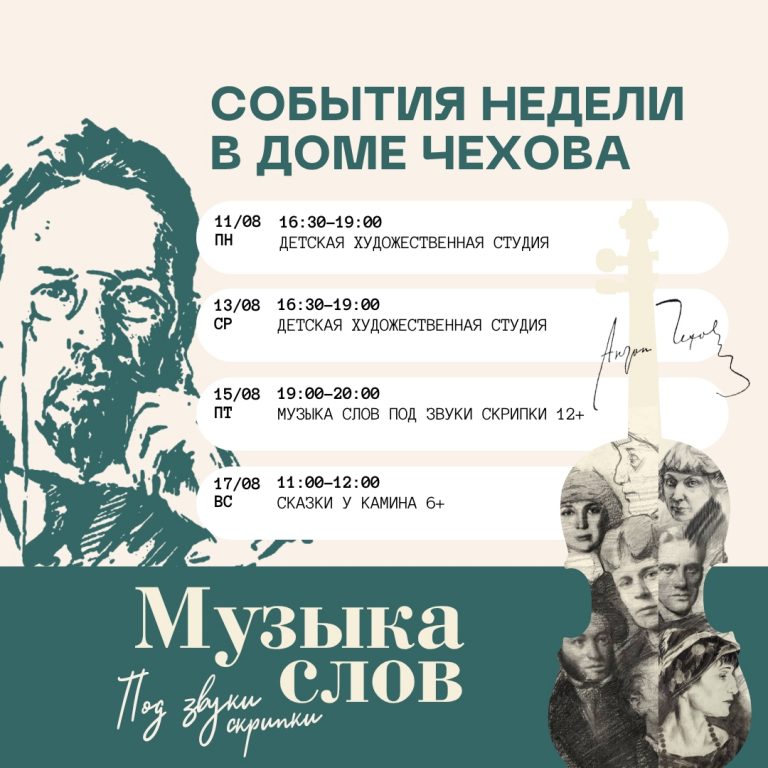 • 6 августа, ср, 10:00 — начало работы выставки студенческих проектов Архитектурной школы “МАРШ” (Москва) “Атмосферы: в Туле” в Доме Белявского. Вход свободный. • 6 августа, ср, 17:00 — мастер-класс “Цианотипия” • 7 августа, чт, 17:00 — сборная экскурсия по экспозиции “Старая тульская аптека” • 8 августа, пт, 19:00 —…