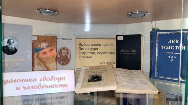 Представленные на выставке издания дают возможность познакомиться с педагогическими идеями и педагогической деятельностью Л.Н. Толстого. Среди экспонатов выставки особое место принадлежит “Азбуке” и произведениям, написанным Толстым для детей.