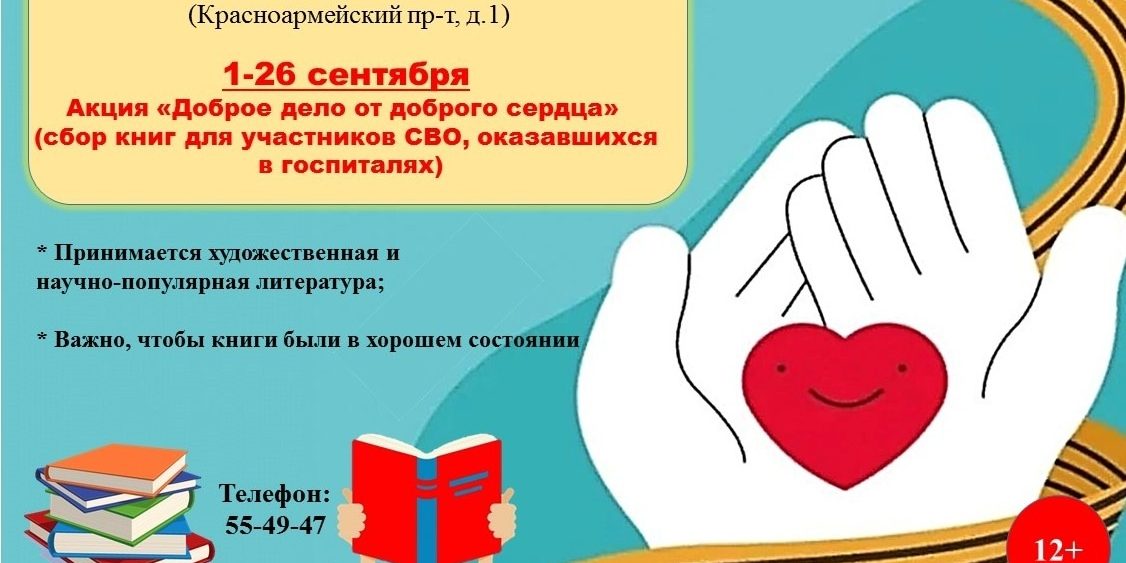 Книги принимаются по адресу Красноармейский пр-т, дом 1 (Библиотечно-информационный комплекс) Телефон: 55-49-47
