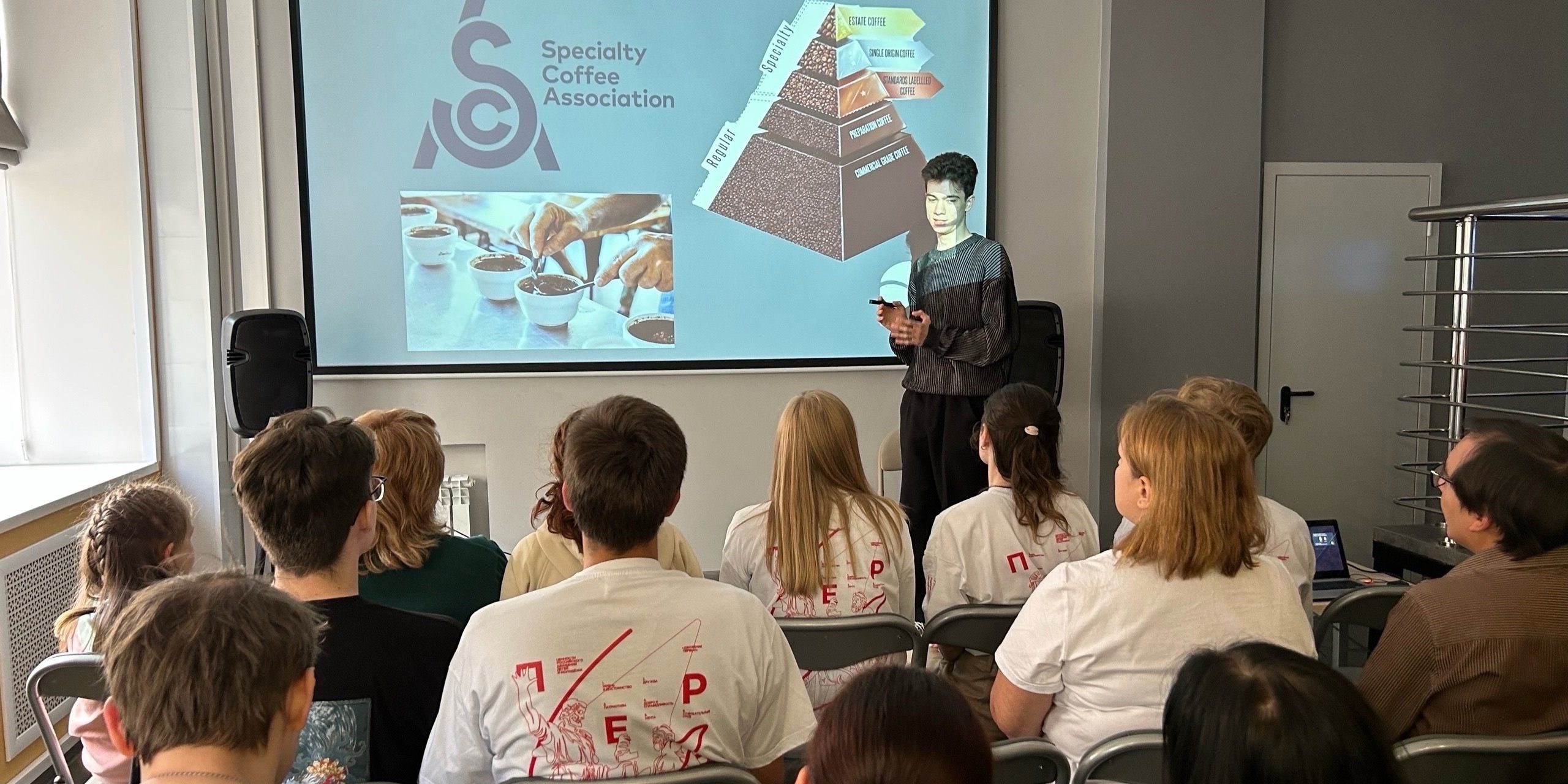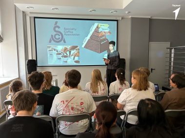 Спикер встречи — сертифицированный дегустатор и менеджер контроля качества компании “Зерновая” Владислав Кажанов рассказал Первым о различных сортах кофе, тонкостях его приготовления и методах заваривания.