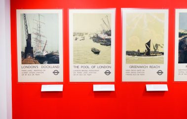 На плакате “Гринвичский плес” изображены старый Королевский военно-морской колледж и Университет Гринвича на берегу Темзы. Эта композиция, выполненная в технике акварели, впервые была использована в 1933 году для рекламы трамвайного маршрута.