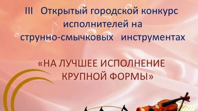 Приглашаем вас 19 февраля 2025 года на конкурсные прослушивания III Открытого городского конкурса исполнителей на струнно-смычковых инструментах “На лучшее исполнение крупной формы”.