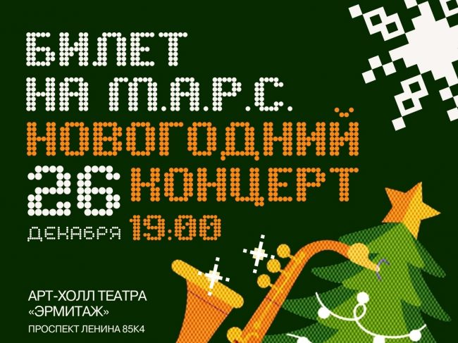 Приглашаем окунуться в атмосферу праздника вместе с нами! Специально для ценителей качественной музыки ансамбль Билет на M.A.R.S. подготовил концерт, где классические новогодние и рождественские композиции зазвучат совершенно иначе — в ярких джазовых аранжировках. Музыканты собрали мировые рождественские хиты и отечественные новогодние песни и переосмыслили их в стиле джаз, рок-н-ролл и…