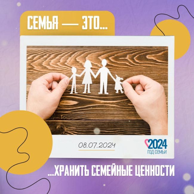 Сегодня в России отмечают День семьи, любви и верности. Этот праздник напоминает нам о важности семейного союза, заботе и уважении друг к другу. Вспомните о ваших самых близких людях. Скажите им самые теплые и нежные слова. Семья — это самое важное в жизни каждого. А что она означает для вас?…
